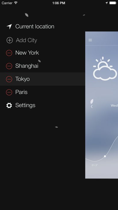- Tap on top-left icon to add cities and customize settings