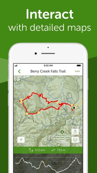 このアプリには、50,000以上のハイキングコースとマウンテンバイクのコースが含まれています。コースには他のユーザーのレビューが投稿されており、好みのコースを発見できます。