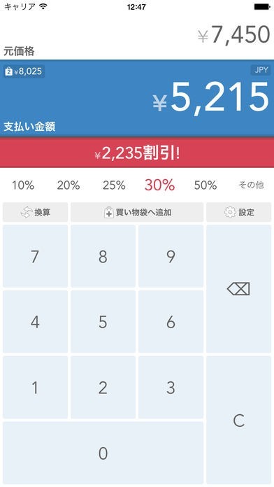 2回の割引計算もラクラク!計算結果はリアルタイム表示!