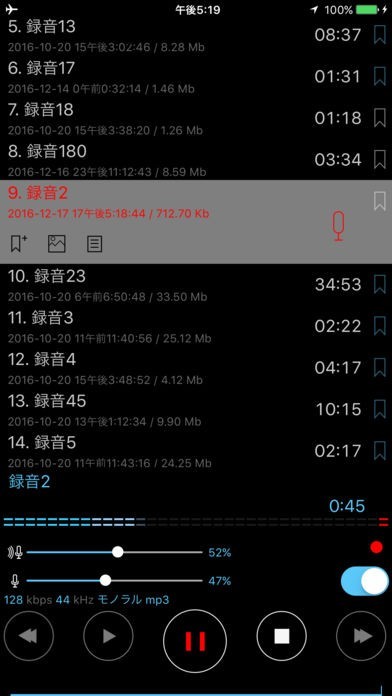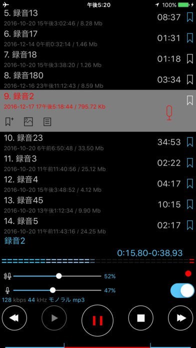 リスト形式で録音した情報やデータを管理出来るのが良かったです