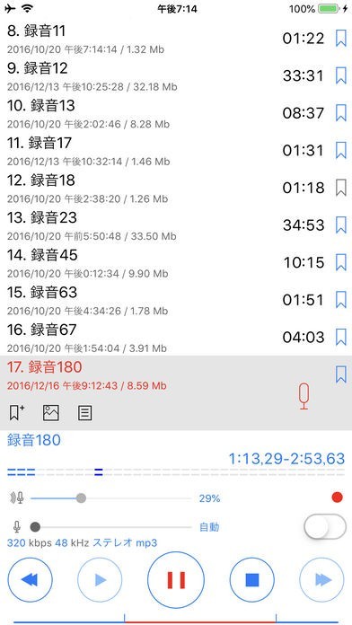 このアプリを使えば音がうるさい場所でも高音質で録音できてすごく便利です。録音時間も無制限で録音できるというのもこれは良いです。もちろん静かな場所でもしっかり録音できるので使い勝手は良いです。