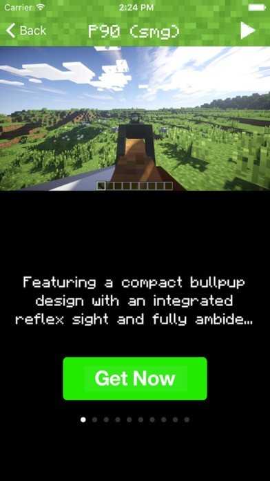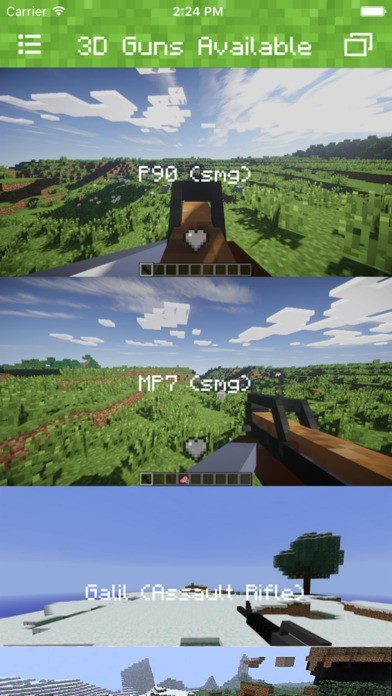 App Storeより引用This mod adds 3D guns to enjoy in your Minecraft world. This mod adds 11 guns such as the P90 (SMG), the MP7 (smg), the Galil (Assault Rifle) as well other items for you to be able to craft these guns.