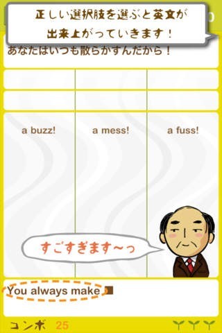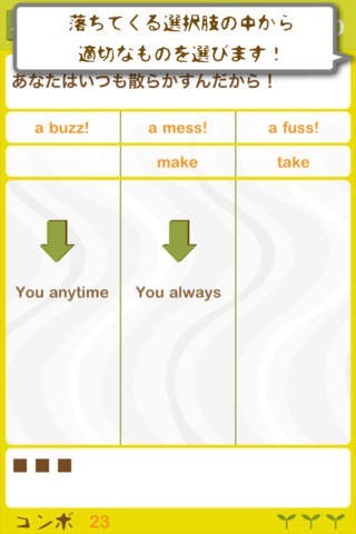 次々と落ちてくる英語選択肢をタッチで選び、センテンスを完成させていきましょう!!
