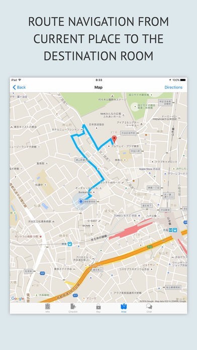 あらかじめ入手したルームコードを入力することで、施設の特徴、宿泊設備の操作方法、近隣の観光案内などが入手できます。