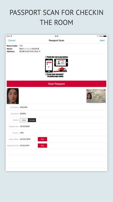 パスポートをスキャンすることにより宿泊時の自動チェックイン&チェックアウト(宿泊履歴の記録と保管、法令書類の作成)が可能です。