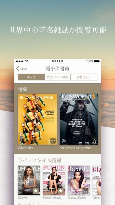 アプリでは、著名雑誌や最新の映画や音楽が掲載されています。搭乗前の時間がある時にチェックして、飛行機の中で閲覧することができます。充実した空の時間を過ごすことができます。