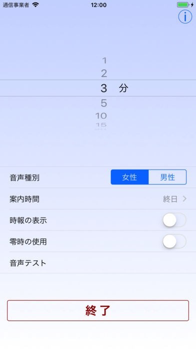 アプリを開いていなくても時間になったら音声で時間を教えてくれる