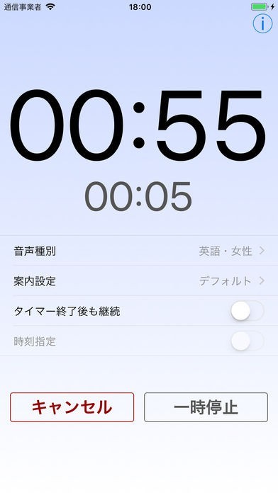 残り時間の案内はデフォルトで、30分以上は30分ごと、30分未満は10分、5分、3分、1分、30秒、10秒とカウントダウンしていくので分かりやすいです。試験勉強のように時間が決まった事を成し遂げる時に使用出来ます。