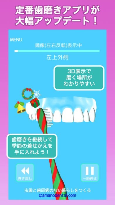 ・歯磨き画面に「巻き戻しボタン」が加わり、歯磨きの動画を巻き戻すことが可能になりました。
