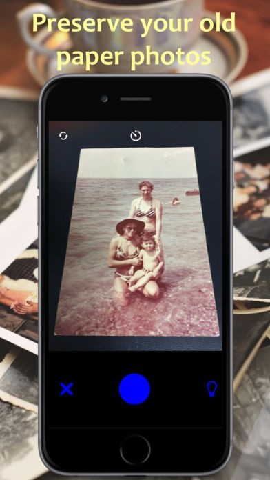 昔撮った光沢紙の写真をスマホのカメラで撮るとライトが反射し綺麗に残す事が難しいです。このアプリでは写真のぎらつきを避けるためスキャン時にフラッシュの代わりに連続光が使われています。
