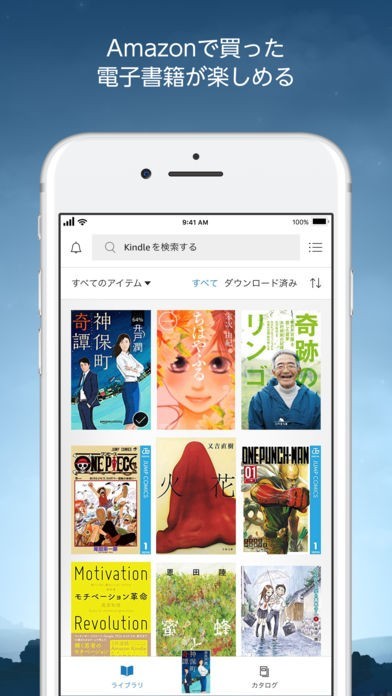 Kindleは、小説や雑誌を電子書籍で手軽に読めるアプリです。 小説や雑誌だけでなく、漫画や無料の本も多数取り揃えられています。 本の種類は頻繁に更新されるので、書店で買うのと変わらないタイミングで最新作を購入出来ます。 実際に本のページをめくるような感覚で読めるのでとても見やすく、余白や背景色などを自分でカスタマイズしてさらに読みやすくすることも可能です。 知らない単語や用語がある場合には、その単語をタップすると意味や詳細が表示されるのでわざわざ調べる必要もありません。