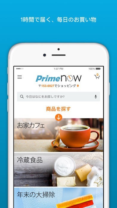Amazonの有料会員が使えるお得なアプリです。「Amazon Prime Now」を利用すれば注文の際に細かいお届け時間を選択できるため、受取人の不在時に配達されたり何度も再配達の連絡をしなければならない、といった煩わしさを無くせます。当日中、しかも1時間以内に配達してもらうことも可能なため、今すぐ必要なものを頼む場合に便利です。商品の種類・数が多いので欲しい物が見つかりやすいです。また、通販ではなかなか頼みづらい冷凍食品にも対応しており、買い物に行けない人の役に立ちます。