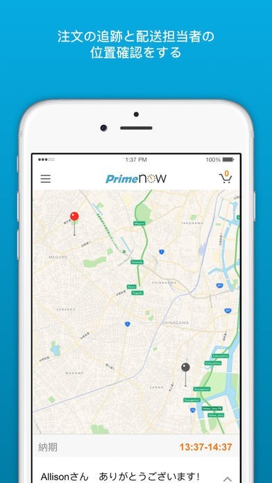 このアプリは、大手ネットショッピングサイトで注文した、日用品や、生鮮食品など、より早く届けなければならないものを、素早く送り届けてくれるように頼むことができます。