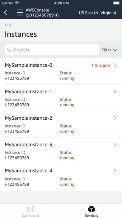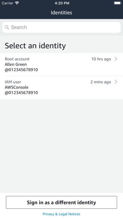 The Console Mobile Application requires an existing AWS account. Upon initial setup, the Console Mobile Application lets you stay signed in to multiple identities at once. Login process leverages biometrics authentication (on supported devices), making access to AWS resources a simple and quick.