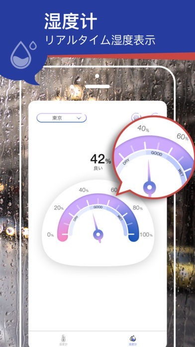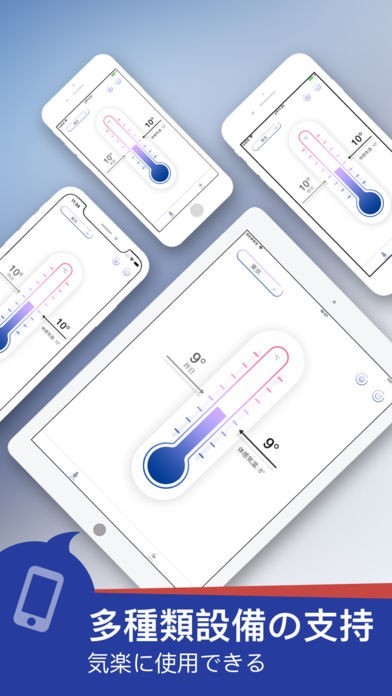 シンプルで使いやすい温度計、そして湿度計のアプリになっています。起動をすればすぐに現在地の温度がわかり、ワンタップで湿度計への切り替えも可能になっています。気温と湿度を把握しておくことで熱中症などの対策になります。さらに屋外温度と屋内温度を比較する機能もあり、外出する際の気温変化を知る場合にも便利です。
