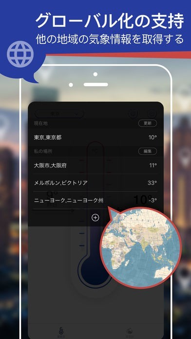 世界各地の気温がリサーチ出来ると同時に、自動で温度を計測してくれるので、外出する時に便利でした。