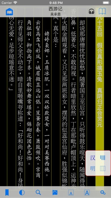 ⑪ 支持聽書功能,適用於所有豎排中文書,可選普通話或廣東話、朗讀語速等等,關掉屏幕也可聽書