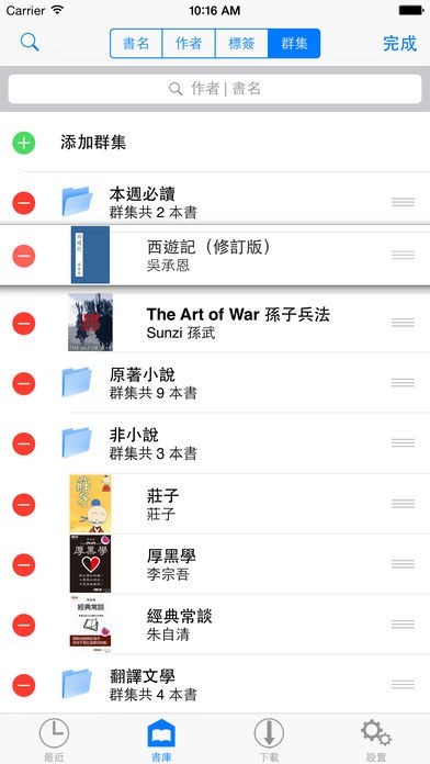 ⑤ 可按群集分類,混層顯示;一本書只可以屬於一個群集;可以添加無限個群集,而群集及其內的書都可以任意排序