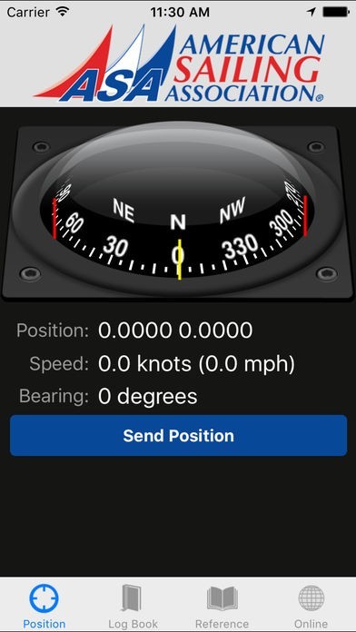 App Storeより引用The American Sailing Association (ASA), the largest association of sailing schools in the United States, is proud to present the official iPhone application for the sailing lifestyle, designed to suit sailing novices and old salts alike. This feature-rich app has four major functional tabs: Position, Log Book, Reference and Online resources.