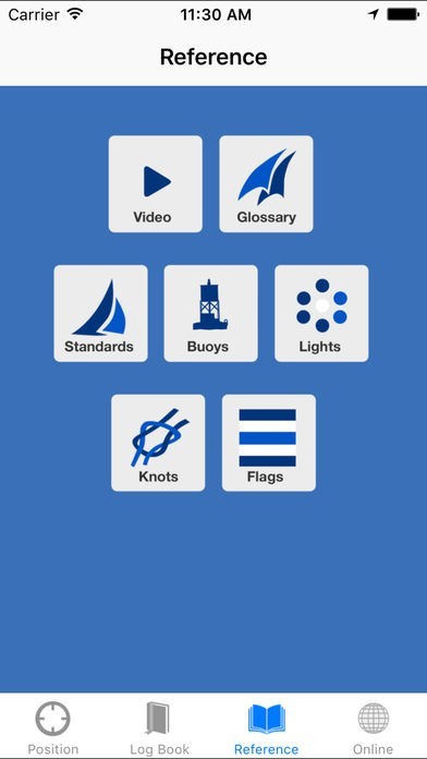 The Reference tab contains information useful for both beginners and experienced sailors. The leading Reference feature is a set of 13 two-minute, high-quality videos produced by ASA demonstrating key sailing skills such as tying spring lines, adjusting sail trim and docking. Other features include illustrations of basic sailing knots, signal flags, navigation lights, buoys, glossary of over 250 sailing terms and an ASA Standards summary.