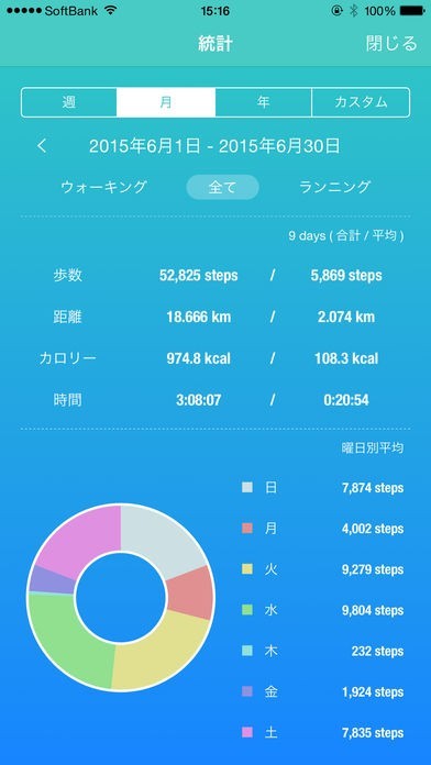 ヘルスケアをとことん記録したい方や新たにダイエットを始めたい方にピッタリ。 数あるヘルスケアアプリの中でも、歩数や消費カロリー以外にも体重や体脂肪などを手軽に記録できるのが「歩数計 Walker M7 - M11」です。 スマートフォンの加速度センサーを採用しているので、ウォーキングだけでなくランニングをしていたかなどの運動量の変化を記録できます。 「ヘルスケア」アプリとの連携を行うと、血圧やBMIの記録が可能になります。 アプリ初めて起動させた瞬間から歩数や運動量の記録をスタートしているため、非常に手軽です。 位置情報を取得すれば歩いたマップの表示が可能になります。 記録した各種データは棒グラフや円グラフになって表示されるため、運動量の推移や割合などが一目瞭然です。