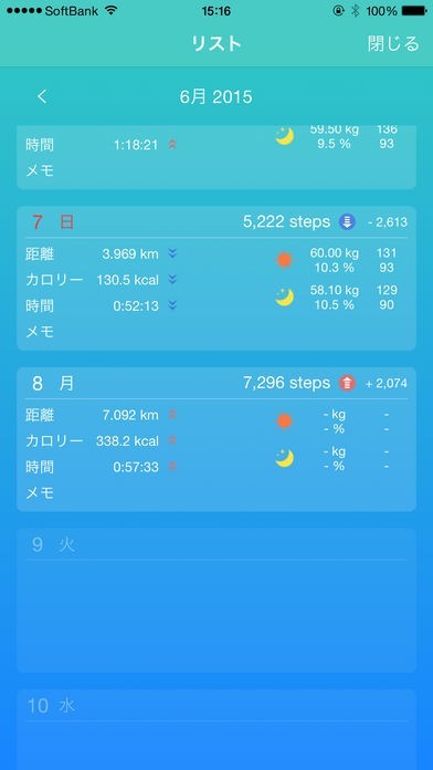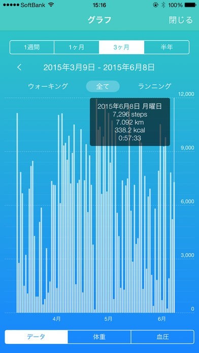計測した歩数や消費カロリーだけでなく、体重や体脂肪、血圧などの健康に関するデータをまとめて入力することが出来るようになっているので、トータル的に健康管理をすることができます。