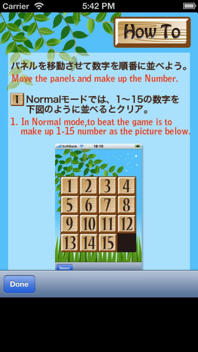 1.Normalモードでは、1~15の数字を順番に並べるとクリア。