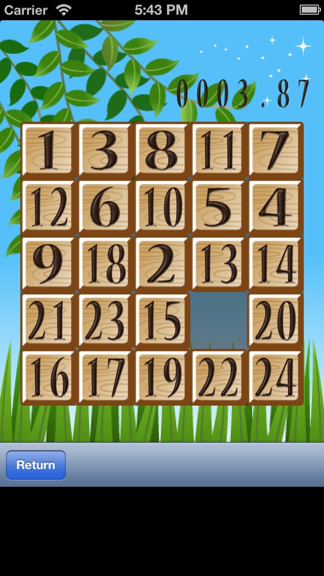 2.Hardモードでは、1~24の数字を順番に並べるとクリア。