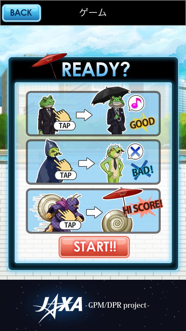 カエル紳士を突然の雨から救ってあげるゲーム救え!カエル紳士 JAXA GPM/DPR Project