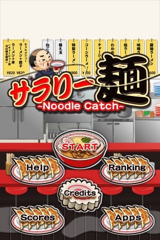 「サラリー麺」は、サラリーマンを操作してラーメンをキャッチするカジュアルゲームです。スマートフォンを傾けることで主人公のサラリーマンが移動。店主が次々と投げつけてくるラーメンの具を上手にキャッチしましょう。次に投げつけられる方向を予測し、テンポよく傾けるのが高得点へのポイントです。具の中でも麺はキャッチに失敗するとライフ減少などのペナルティが発生するため、優先して受け止める必要があります。お手軽操作で気楽に遊べるため、移動中の暇つぶしにも最適です。また、オンラインランキングも搭載。他ユーザーや友達と得点を競い合って遊べるようになっています。