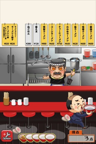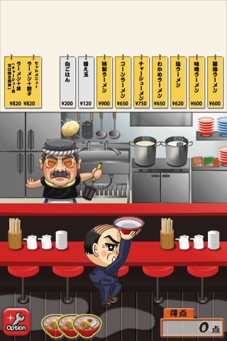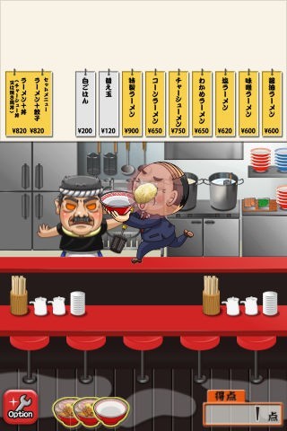 ラーメンの中華そばや具が店内を乱れ飛ぶ!中年サラリーマン風のキャラが哀愁を誘うキャッチアクションゲーム
