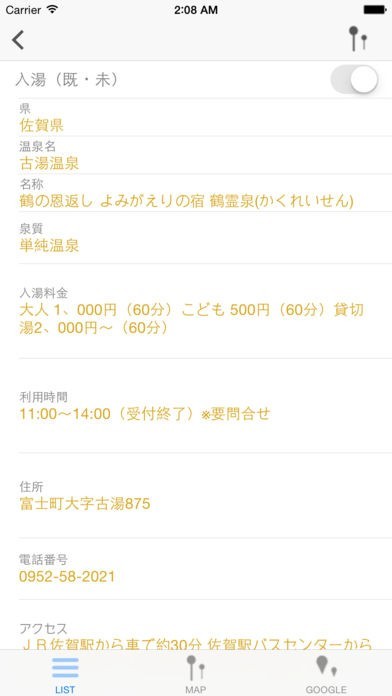 全温泉リスト、検索、マップ機能等々により、あなたの