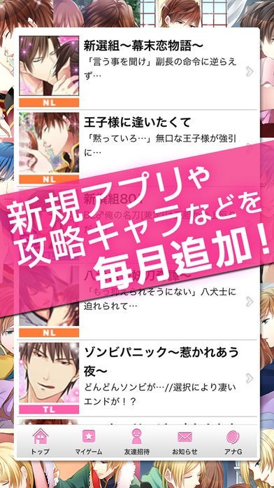 App Storeより引用複数の恋愛シュミレーションゲームが遊べる「あなカレ」