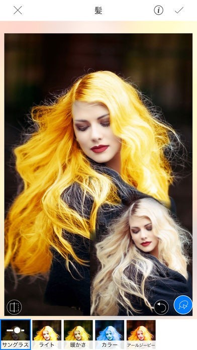 • 明るさ、コントラスト、露出、色相、彩度、輝度、シャドー、ミッドトーン、ハイライト、温度、影、カラー等、色々な調整ツールを使用し、画像を改善しよう。