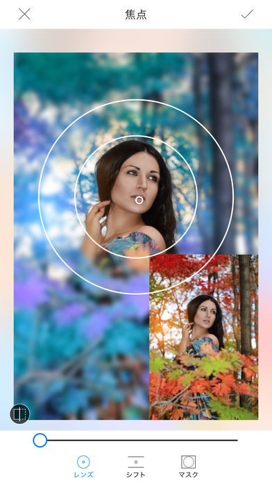 • レンズぼかし、斜めシフト、マスクぼかし等、様々な焦点を加える