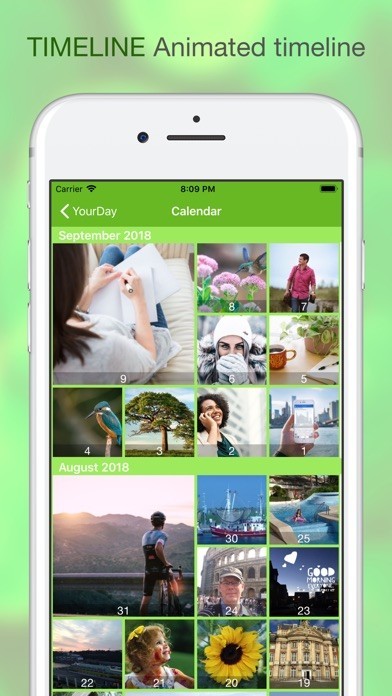 * View your content with a beautiful animated timeline. One picture is chosen for a day.