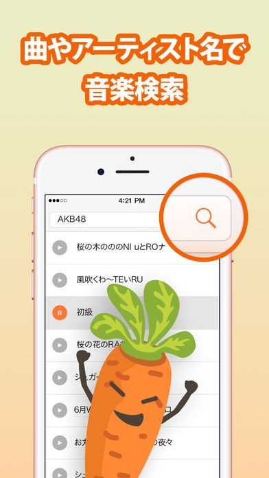 曲・歌手名でアプリ内検索機能ができるので、探したい曲が見つかりやすいです。また、Wi-Fiなどを通じてストリーミングできるので、ネットワークへの負担も少なく便利です。