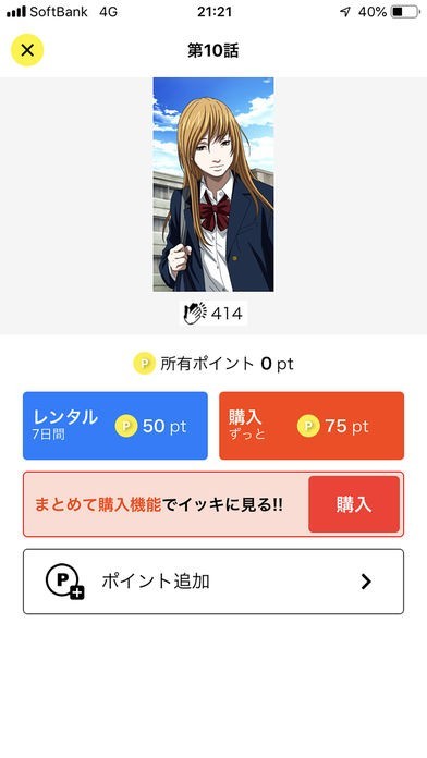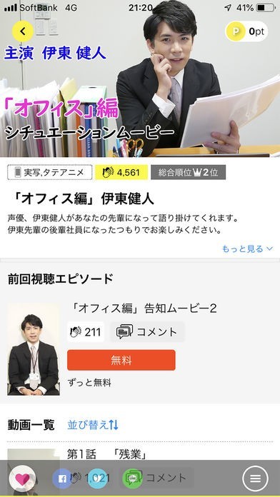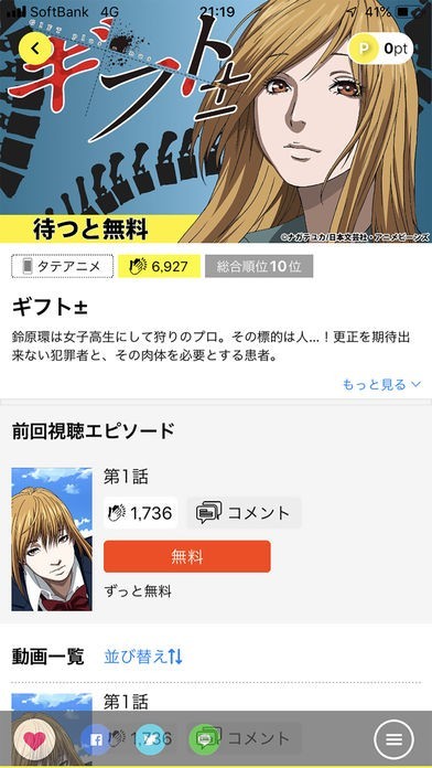 他のアプリに比べると女性向けの作品が多く、また、タテアニメも多いため、短時間で見て楽しむことのできる作品が多く配信されています。そのほか進撃の巨人等も視聴可能です。