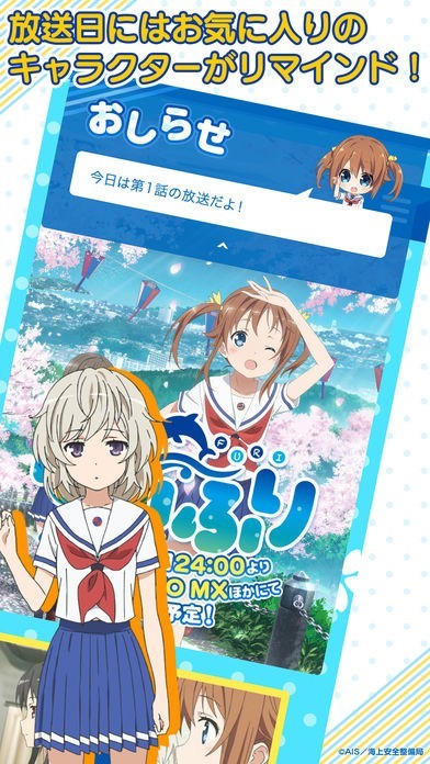 そのほか、お気に入りのキャラが放送日をリマインドしてくれたり、アニメの最新情報もいち早くお届けいたします!