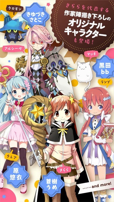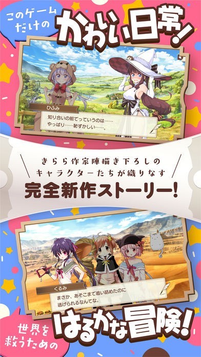「きららファンタジア」は、4コマ漫画専門月刊誌「まんがタイムきらら」の作品の人気キャラクターが多数登場するスマートフォン向けロールプレイングゲームです。 蒼樹うめ・作「ひだまりスケッチ」や三上小又・作「ゆゆ式」等のアニメ化された作品も多く参戦しており、それらのキャラクターとゲームオリジナルキャラクターが織りなすキュートな日常と壮大なファンタジーを楽しめます!