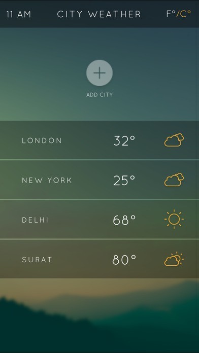 天候情報を表示することができる都市はいくつでも登録しておくことが可能となっているので、よく出かける都市や友達がいる都市など、気になる都市を気軽に登録することができます。