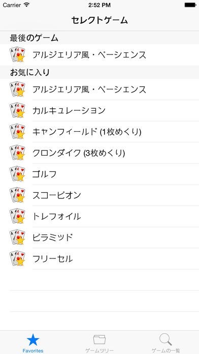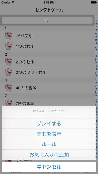 このアプリでは全部で253種類のソリティアを遊ぶことができます。「そんなにたくさん入っていてもルールがわからない」という人のために、各ゲームのルール説明とデモを見ることができるので、初心者でも安心です。