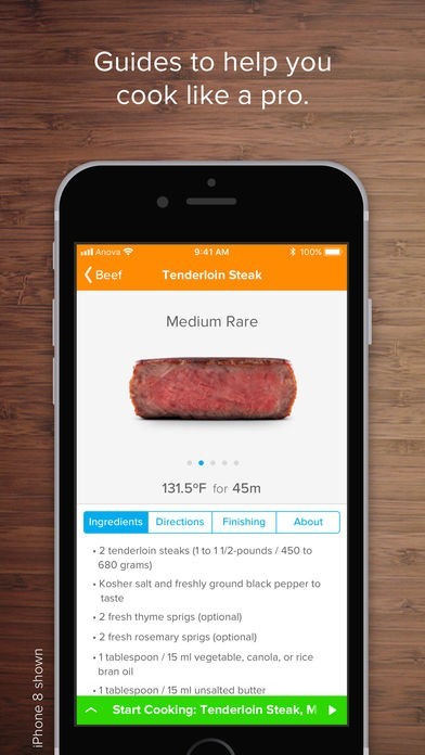 「Anova Culinary」はアプリを使って食べたい料理のレシピを見つけることができるアプリです。すぐさま料理を完成させるための材料や手順が詳細に掲載されているので料理経験があまりない方でも問題なく使用できます。専用の調理器具のスイッチを入れたり、加熱時間を計測したりと料理の手間を省くための機能も充実しています。
