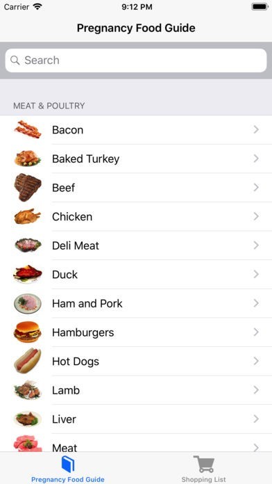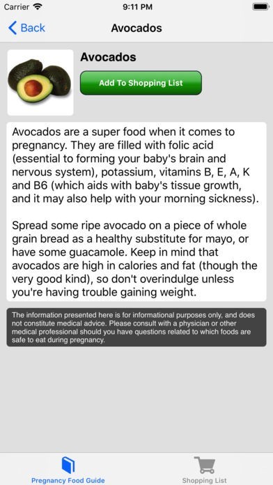 妊娠期間にある女性のためのショッピングリスト機能付き食品ガイド