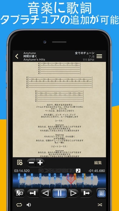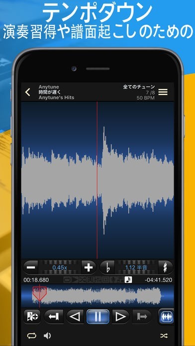 アプリ「Anytune - スローダウン音楽BPM」では、スマートフォン上にある音楽を、ピッチを下げないままテンポダウンして再生し、耳コピや正しいフレーズを覚えるために役立てることができます。聞きたい部分を何度もループしたり、練習したい曲のテンポを遅くしたりと、用途に合わせてさまざまな使い方が可能です。