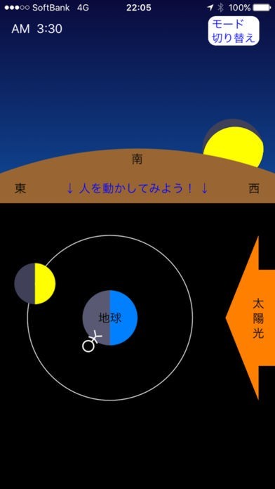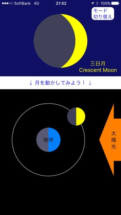 App Storeより引用月をタッチして動かして、満ち欠けを直感的に理解できるアプリです。