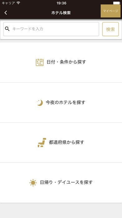 ホテルの検索は宿泊予定日や予算、場所を指定して検索できることはもちろん、GPS機能で今いる場所から近いホテルを検索することもできます。また当日29時までの予約に対応しているので、急に宿泊したいと思った時に便利です。