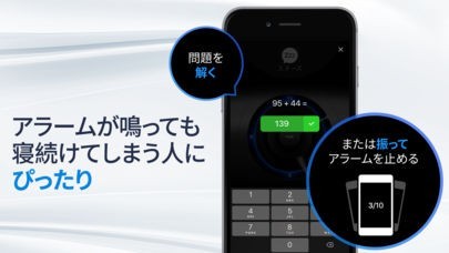 アラームを止める方法は、デバイスを振るか数学の問題を解くかの2種類の方法から選べます。アラームを止めた後にいつの間にか寝てしまったという経験がたくさんある人におすすめです。スヌーズの設定もできるので、自分の好きなモードで大切な一日のスタートをサポートします。