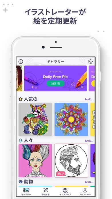 アプリにはイラストレーターが提供する無料の塗り絵が入っている他、自分が持っている画像や写真をインポートして塗り絵の題材にする事が可能です。自分が好きな題材で塗り絵を楽しめます。
