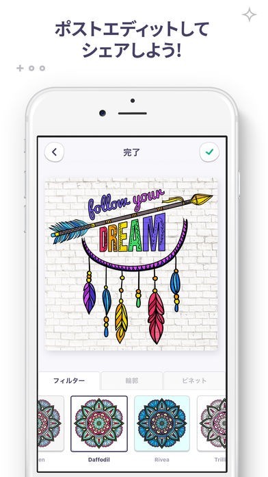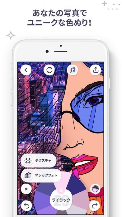 芸術的な大人の塗り絵を楽しみたい方にピッタリのアプリ。多色が揃う豪華なパレットで細かな色分け可能!